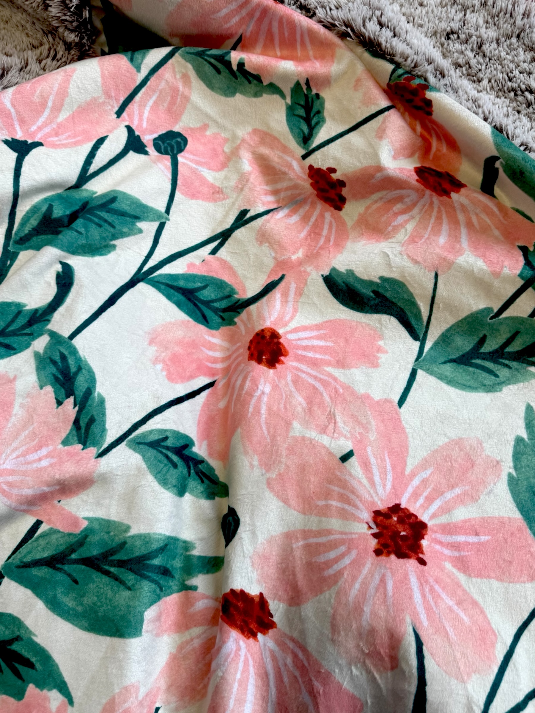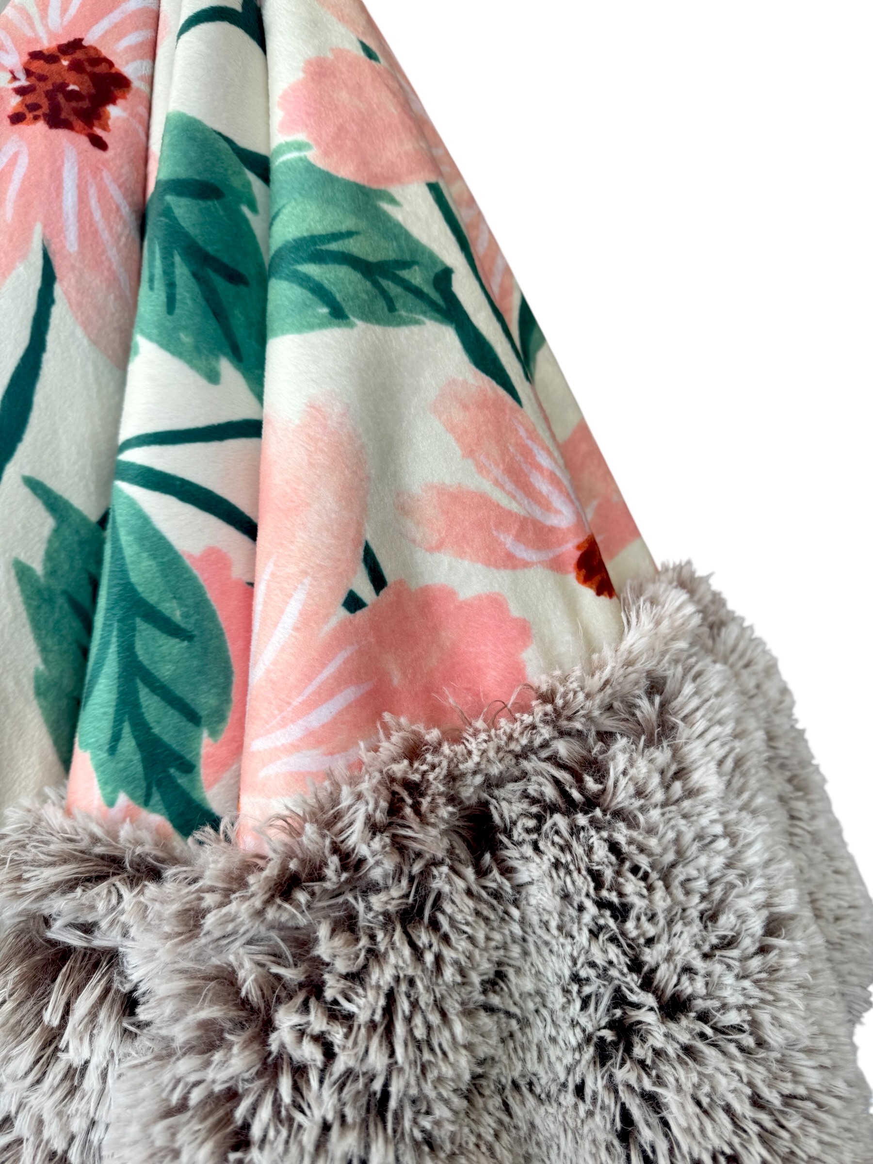 Beautiful modern peach floral print on luxe fluffy cocoa shag