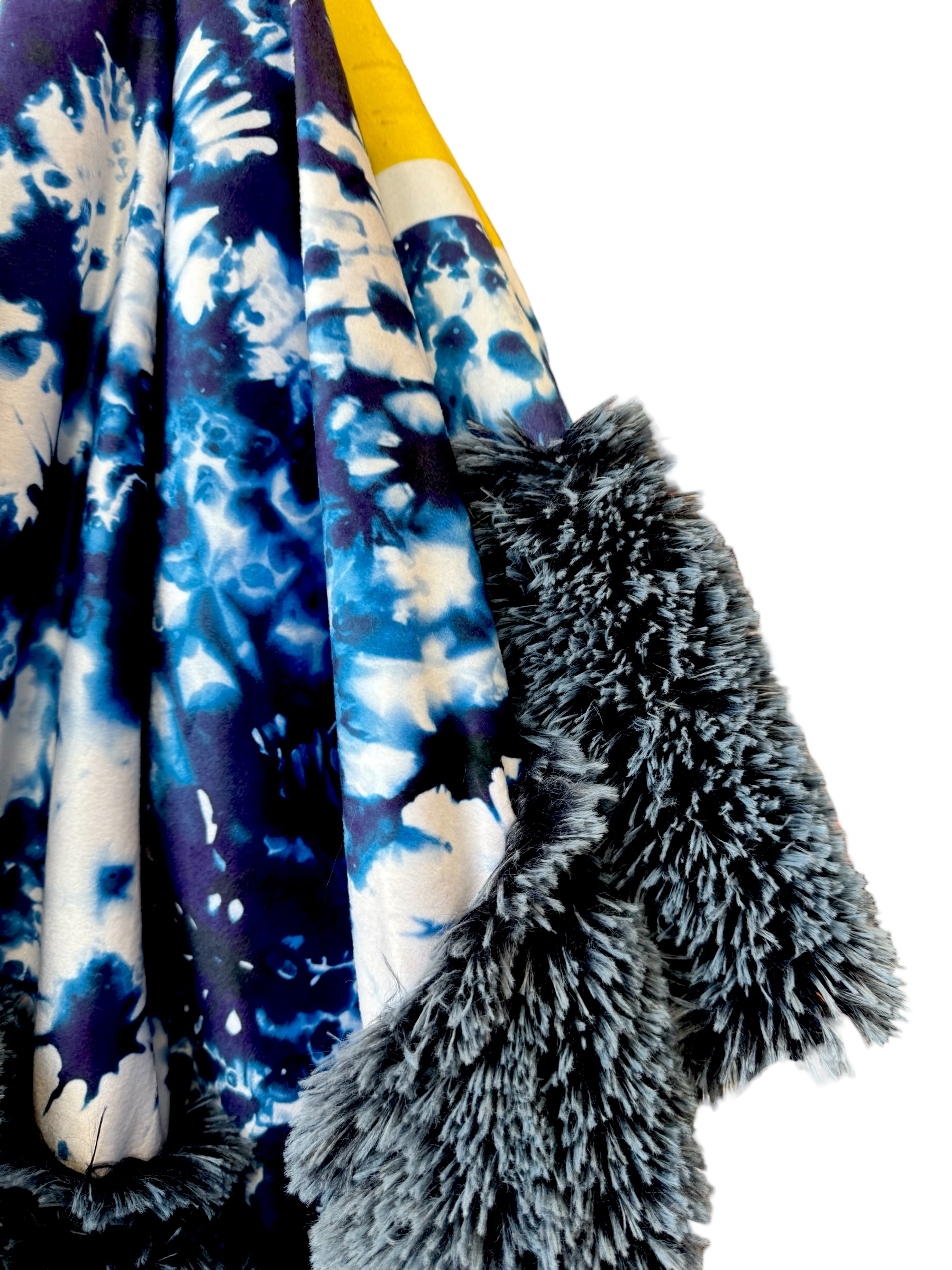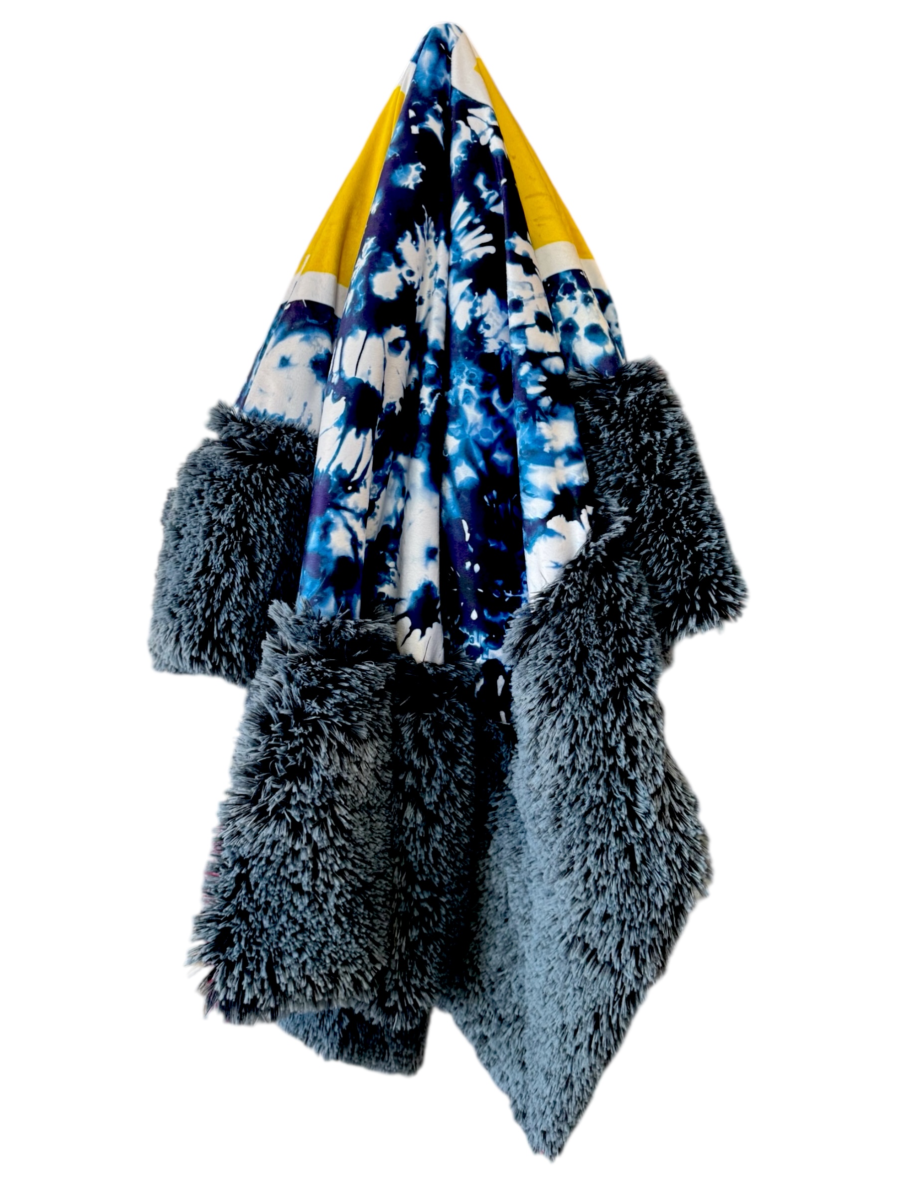 U of M minky print on fluffy bluebell shag